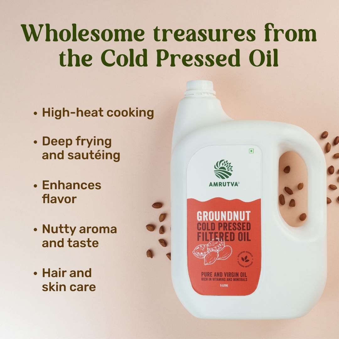 This best cold pressed groundnut oil offers several health benefits; including lowering blood cholesterol and providing a good source of antioxidants. Amrutva groundnut oil is cold pressed oil groundnut oil which means it is extracted using a traditional method that preserves its natural goodness. Looking for ground nut oil cold pressed? Choose Amrutva. If you are considering the cold pressed groundnut oil price; know that you’re investing in a premium product for your health and cooking needs. This groundnut oil is ideal for those seeking the healthiest cooking oil. This organic cold pressed groundnut oil strengthens body and immunity and fights premature aging. This cold-pressed groundnut oil near me is available for purchase and a healthy addition to your diet.